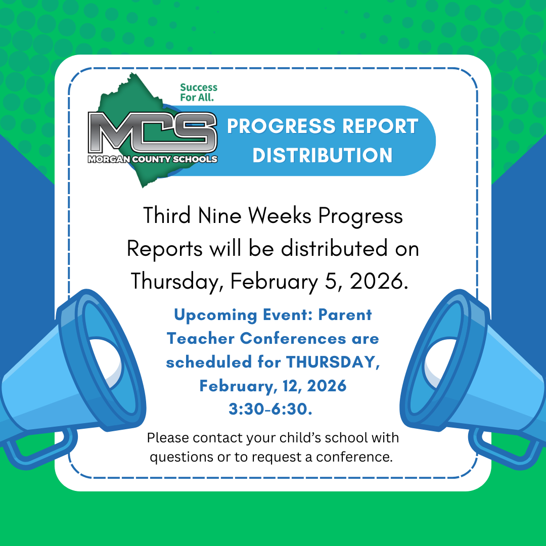 Third Nine Weeks Progress Report Distribution- Thursday, February 5, 2026.